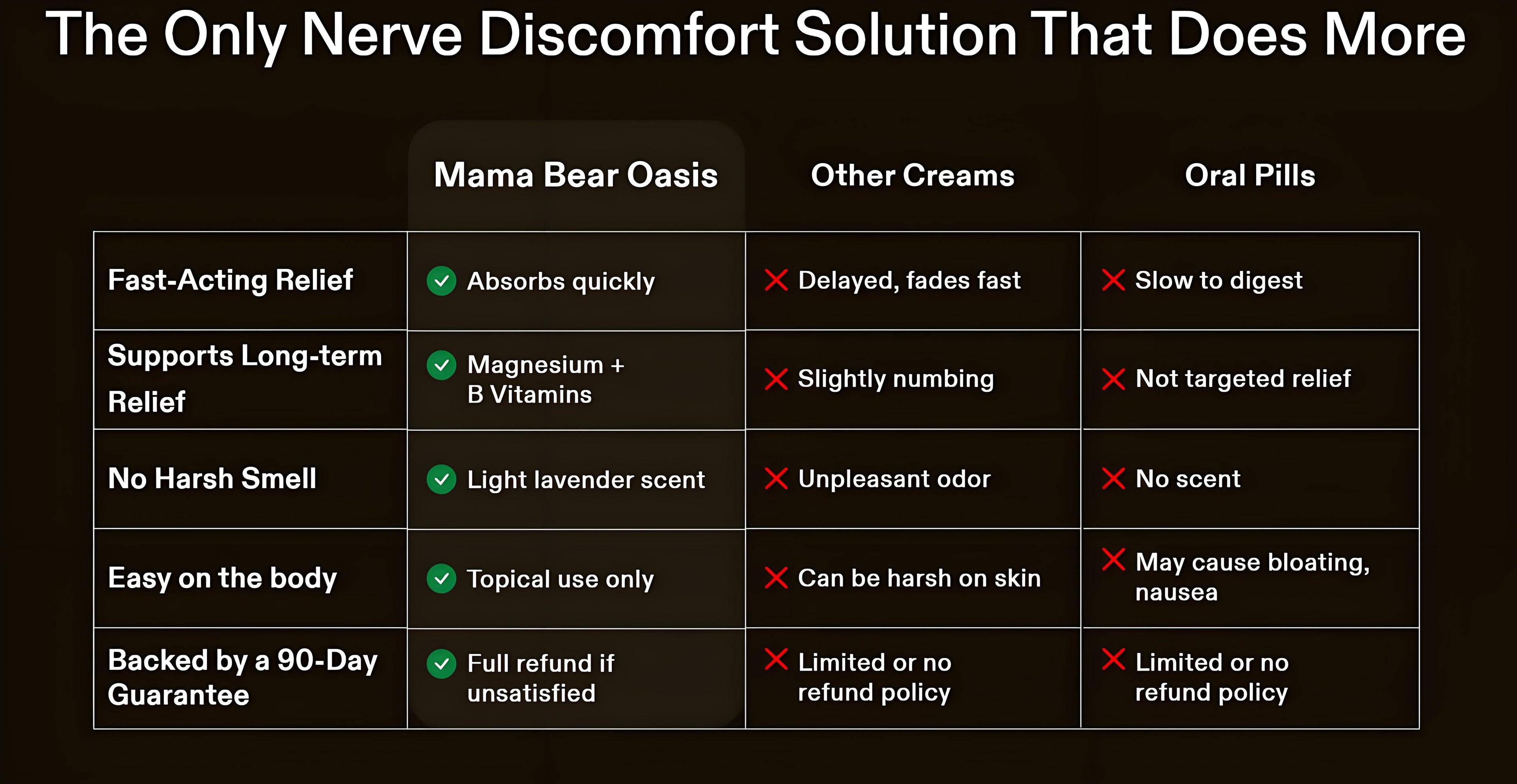 Many people are unaware of their magnesium deficiency, which can intensify discomfort. Our lotion contains magnesium chloride, a mineral essential for nerve health and function. lts soothing properties help the lotion combat nerve discomfort and offer the comfort you deserve.